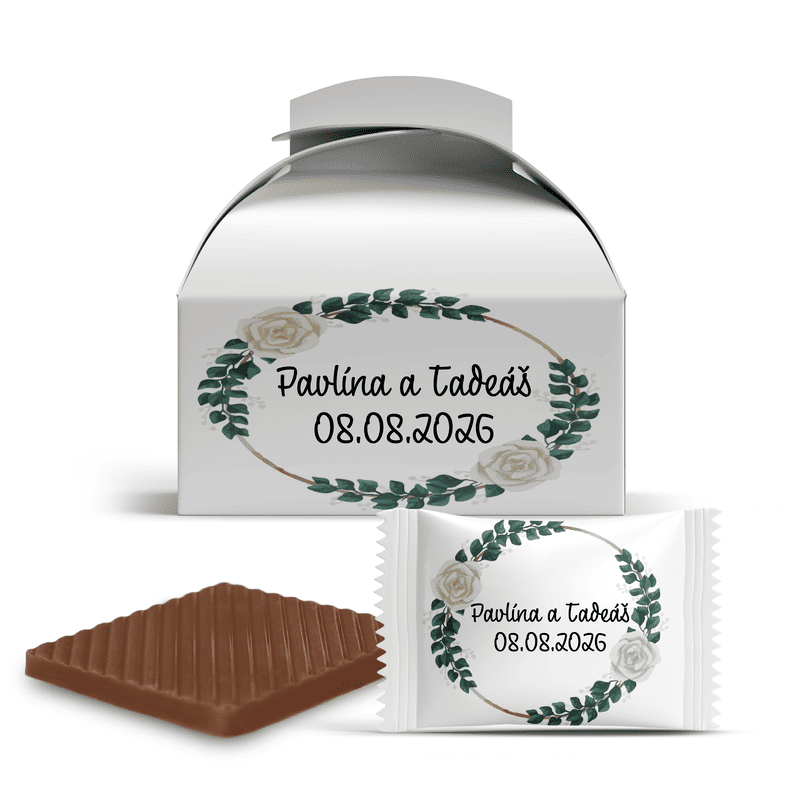 Naše mini čokoládky s vlastním textem v dárkové krabičce jsou dokonalou drobností jako poděkování hostům, výslužka ke svatebnímu stolu nebo sladká dekorace.